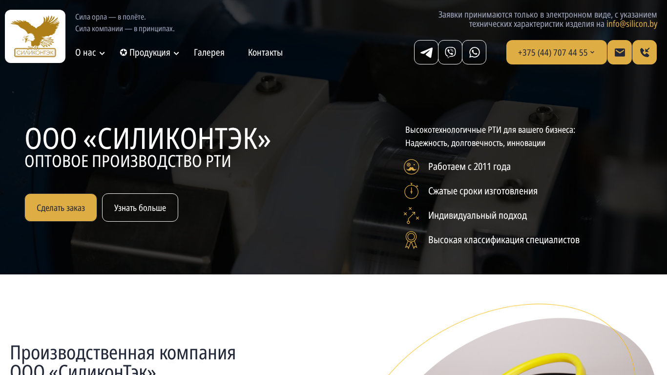 | SEO-описание | Производство РТИ из силикона и промышленных уплотнений оптом. ★ Работаем с 2011 года ★ По образцу на заказ ☎️ +375 (44) 707 44 55. |