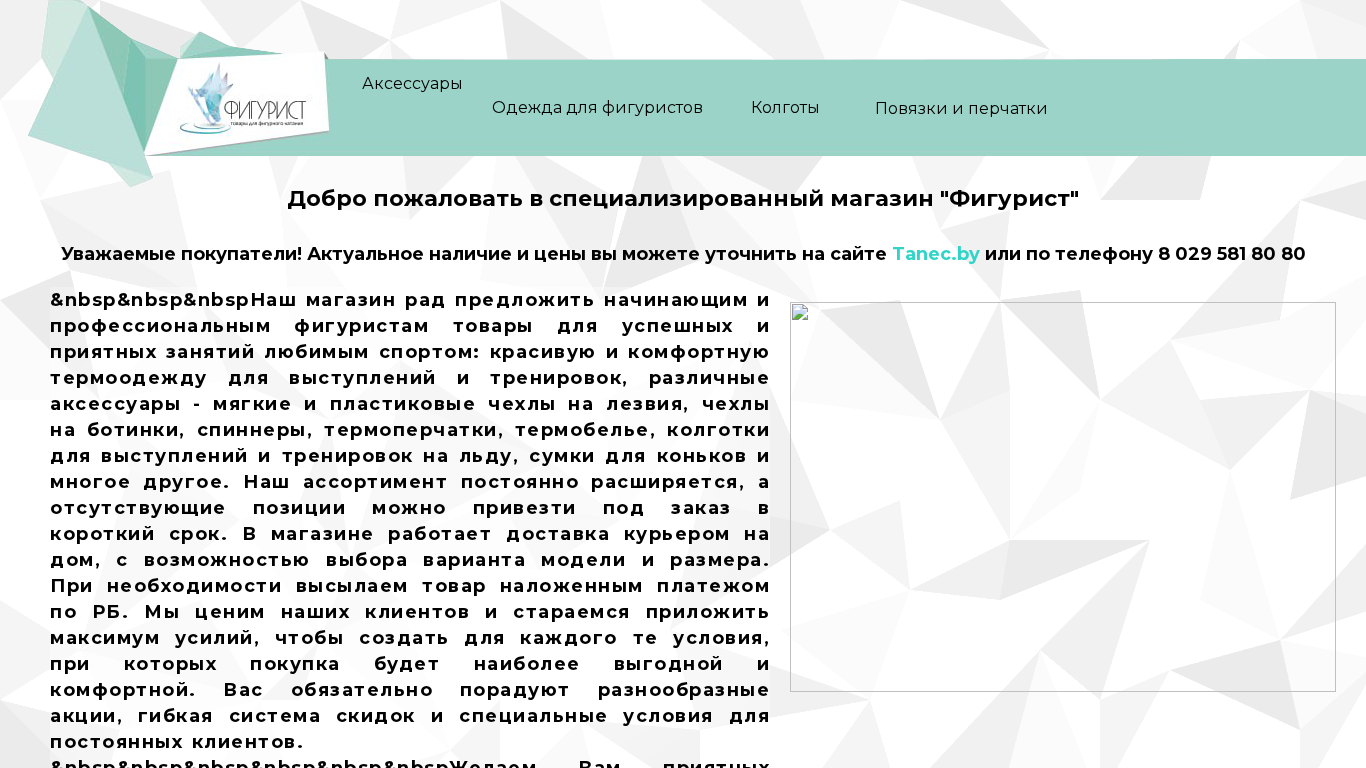 Этот сайт — онлайн-магазин под названием "Фигурист", специализирующийся на товарах для фигурного катания. Название сайта звучит как "Фигурист — Товары для фигурного катания" (Товары для фигурного катания от Figurist). В описании используются ключевые слова, такие как 'товары', 'фигурное катание', 'магазин', 'покупка', и 'кататели'. На первом месте находятся слова 'статьи', 'вещи', 'магазин', 'продукты', 'катание', 'клиенты', и 'условия'. Сайт предлагает широкий ассортимент товаров, включая одежду для выступлений и тренировок по фигурному катанию, а также различные аксессуары, такие как мягкие и пластиковые щитки для коньков, наколки для коньков, свитера, термозащищенные перчатки и другие товары как для выступлений, так и для тренировок. Цель магазина — удовлетворить потребности как начинающих, так и профессиональных фигуристов, и она постоянно расширяет свой ассортимент. Доставка осуществляется через...
