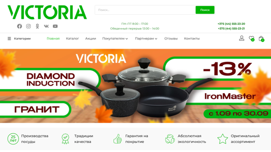 | SEO-описание | Официальный сайт интернет-магазина Виктория Бай в Беларуси - большой выбор кухонной посуды по доступным ценам ✅ Экологичное производство ⚡ Гарантия 12 месяцев 🚚 Доставка по Беларуси |