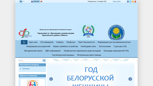 | AI-анализ | Веб-проект "СПЦ с приютом Фрунзенского района г. Минска" (frunspc.minsk.edu.by) представляет собой веб-сайт, управляемый Государственным образовательным учреждением "Социально-Педагогический центр с приютом Фруэнской зоны города Минска". Сайт предлагает информацию о центре, его услугах и различных программах. Основные разделы включают образование, информацию для детей и родителей, структуру семьи и формы ухода за детьми. Пользователи могут найти подробности о структуре центра, методическом портале и популярных разделах. Кроме того, на сайте представлен календарь событий, информация о кампаниях, таких как "Сердце к детям", и безопасная карта маршрутов. Сайт также содержит ссылку для получения дополнительной информации по контактам учреждения. |