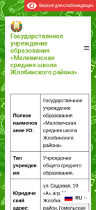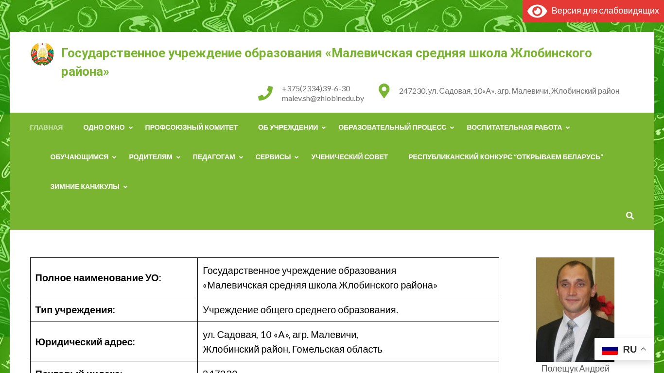 | Название / Заголовок | Государственное учреждение образования «Малевичская средняя школа Жлобинского района» |
