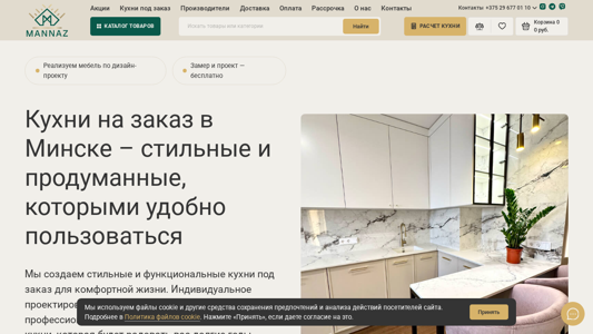 | Название / Заголовок | Кухни на заказ в Минске – цены от производителя, фото, рассрочка по картам покупок и кредит, кухни быстро и качественно – Mannaz.by |