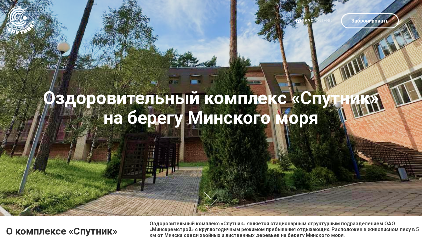 Сайт предназначен для оздоровительного комплекса (оздоровительный в переводе с русского) по имени Сатурн, расположенного в Беларуси. На сайте представлена информация о комплексе, его местоположении, контактах и возможности бронирования номеров и услуг. Комплекс является структурным подразделением ОАО "Минскремстрой" с круглогодичной возможностью размещения отдыхающих. Он расположен в живописном лесу на расстоянии 5 км от Минска, вдоль берегов Мингория. Комплекс имеет первую категорию (санаторно-курортную) сертификацию. Предлагает комплексные оздоровительные и реабилитационные мероприятия. Площадь земельного участка санатория составляет 4,4 га, территория ограждена и охраняется. На территории имеются спортивные поля для различных видов спорта.
