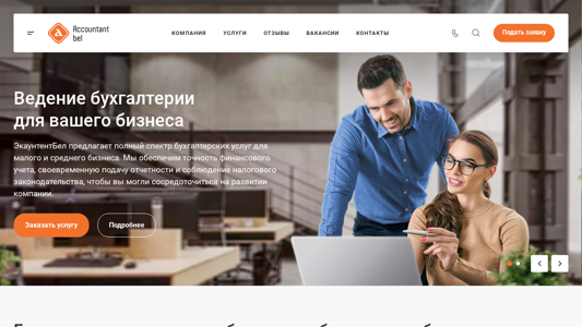 Сайт является белорусской компанией по учету ЭкаунтентБел, предлагающей полный спектр услуг по учету в Минске по доступной цене. С 15-летним опытом в области аутсорсинга, компания специализируется на ведении учета для юридических лиц. На сайте представлены разделы для различных видов бизнеса, включая розничную торговлю, производство, IT и индивидуальных предпринимателей, и предлагаются услуги по учету, консультированию по налогам и развитию бизнеса. Компания также предоставляет услуги восстановления учета для юридических лиц и физических лиц, а также консультации по учету, налогообложению и росту бизнеса. На сайте доступны телефонные номера, электронная почта и возможность запросить звонок обратно. Компания работает с понедельника по пятницу, с 9:00 до 18:00.