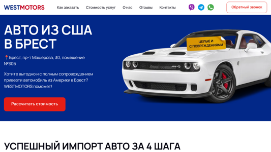 SEO-описаниеХотите выгодно купить авто из США в Бресте? Звоните в Вестмоторс! ☎ +375(29)170-70-01 ✅ Помощь в растаможке ✅ Открытые цены
