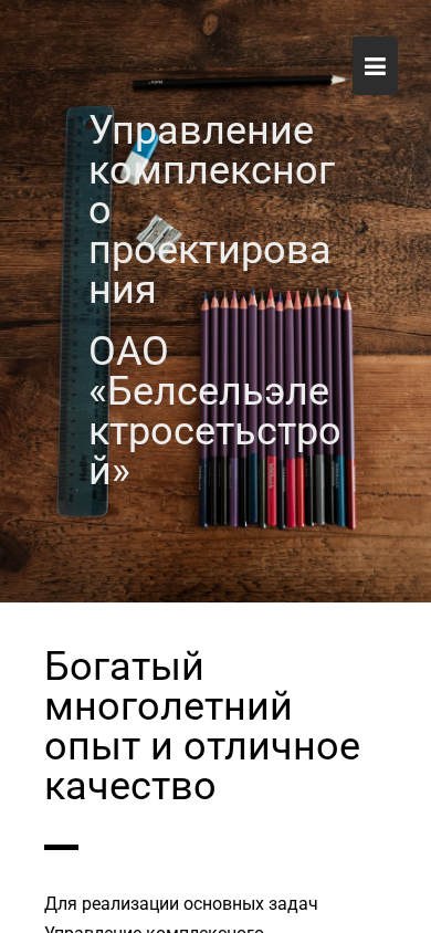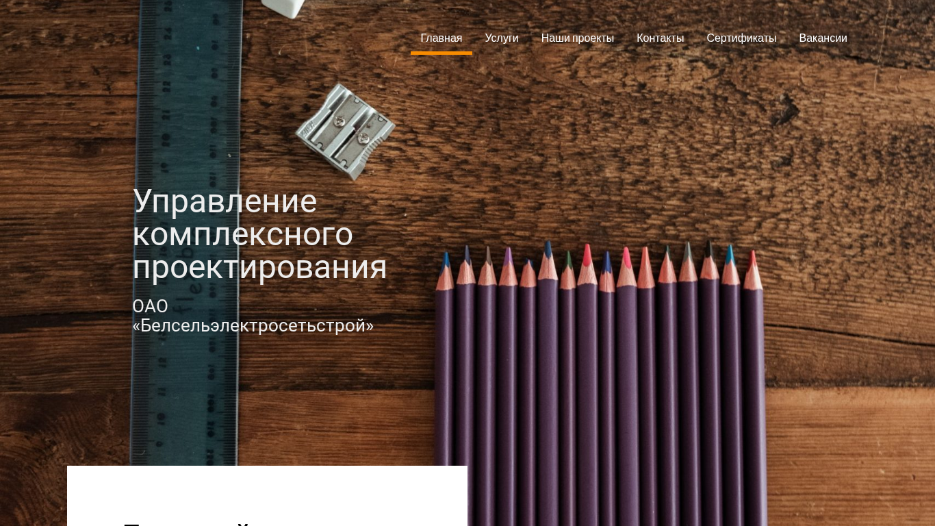 Этот сайт, носивший название "Управление комплексным проектированием" (Management of Complex Projects), является частью белорусского ОАО "Белсельэлектросетьстрой" (Belselesetstroy). Сайт предлагает информацию о предоставляемых компанией инженерных услугах, сосредоточенных на управлении сложными проектами. Основные области работы включают в себя проектирование электросетевых систем, строительное проектирование, геодезию, оценку стоимости и экономику. Ключевые клиенты и завершенные проекты включают Государственное производственно-торговое объединение "Белэнерго", Республиканское производственно-торговое предприятие "Беларусьторг" и Администрация Президента Республики Беларусь, среди других. Сайт предлагает услуги в области геологических исследований, авторский надзор, типовое проектирование и оптимизированные инженерные решения. Цель состоит в предоставлении индивидуальных, детализированных решений для эффективной работы.