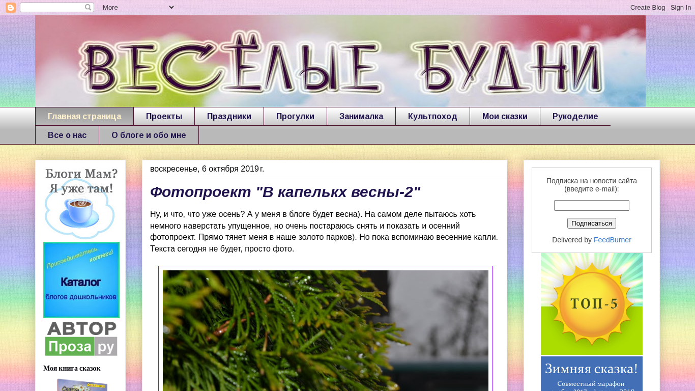 | AI-анализ | Проект веб-сайта "Веселые будни" (Happy Days) посвящен развитию детей, активностям, играм, прогулкам, рукоделию и праздникам. Автор проекта, Анна Игнатьева, делится своими впечатлениями и идеями на блоге, охватывающем темы, такие как сезоны, природа и фотография. На сайте представлены разделы для проектов, праздников, прогулок, уголок рукоделия, детский культурный маршрут и авторские сказки. Последние публикации включают в себя фото-проект под названием "В капельках весны-2" (In the Droplets of Spring-2), где автор делится фотографиями на тему весны. Еще одна статья посвящена праздничному мероприятию с пиратской тематикой для группы детей, а также проект под названием "Лица ушедшей войны" (Faces of the Past War), где автор и её детский клуб делится историями прошлого. |