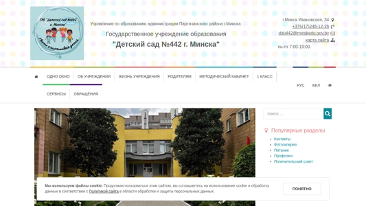 АдресЗаведующий), +375 (17) 363 22 95 (Вахта), Электронная почта:, ddu442@minskedu.gov.by, 220088 г. Минск, улица Ивановская, 34