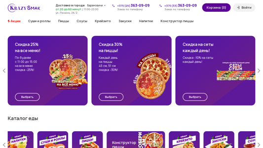 | Адрес | Доставка еды - KrazySmak, Доставка в городе, Барановичи, Барановичи, от 20 до 60 минут, 11:00-23:00, ул. Ленина, 26/2 |
