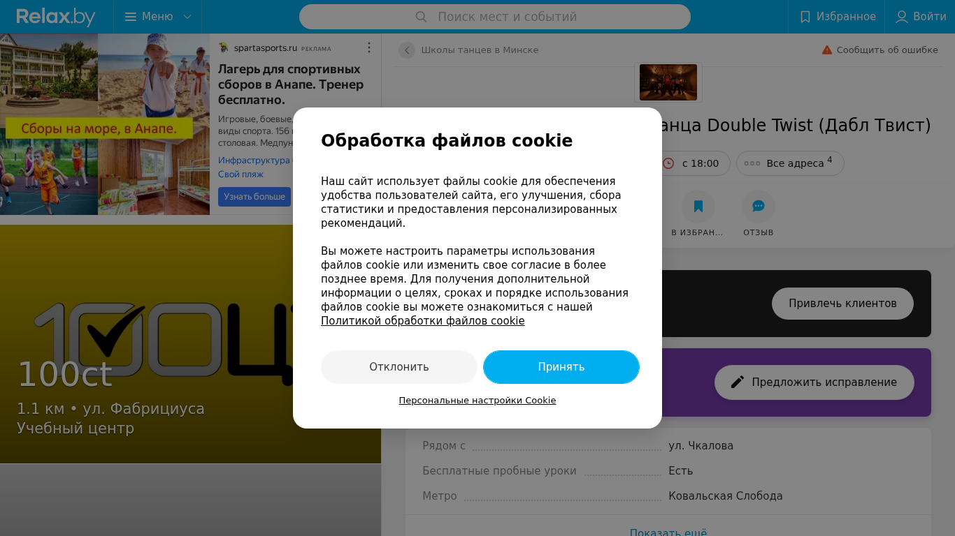 | SEO-описание | Профессиональная студия танца Double Twist (Дабл Твист) в Минске – отзывы, телефоны, график работы и карта проезда на Relax.by |