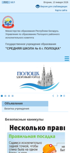| AI-анализ | This website is the official homepage of Middle School No. 6 in the city of Polotsk, Belarus. The title of the page is "СШ 6 г. Полоцка" (CCSS6GP.BY in English domain), and the description includes keywords related to the school, such as "educational institution," "school," "schedule," "contacts," and "work." The top words indicate that the site contains information about the 2025 and 2026 academic years, calendars, reading materials, contacts, and the educational process. The website provides details about the institution's leadership, administration, and academic offerings, including subjects like mathematics, literature, and music. Additionally, it mentions extracurricular activities, such as sports, and resources for parents and students. The color scheme is standard, and images are disabled. The site includes |