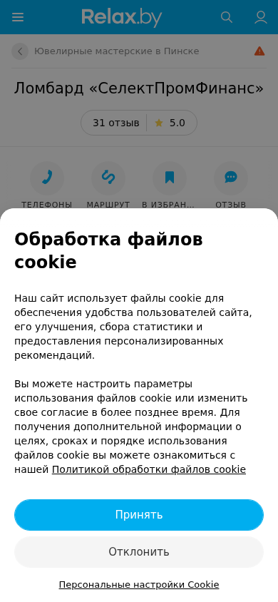 SEO-описаниеЛомбард СелектПромФинанс в Пинске – отзывы, телефоны, график работы и карта проезда на Relax.by