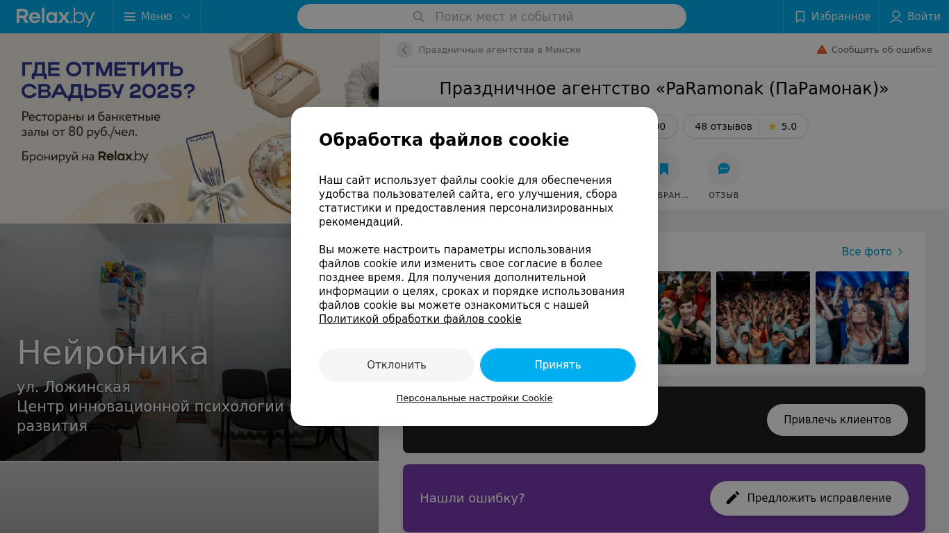 | SEO-описание | Праздничное агентство PaRamonak (ПаРамонак) в Минске – отзывы, телефоны, график работы и карта проезда на Relax.by |