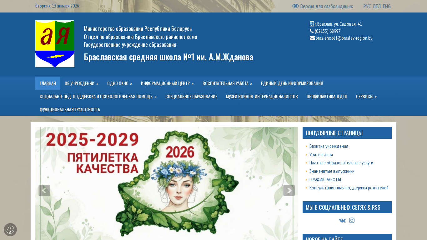 | Название / Заголовок | ГУО "Браславская средняя школа №1 им. А.М.Жданова" |