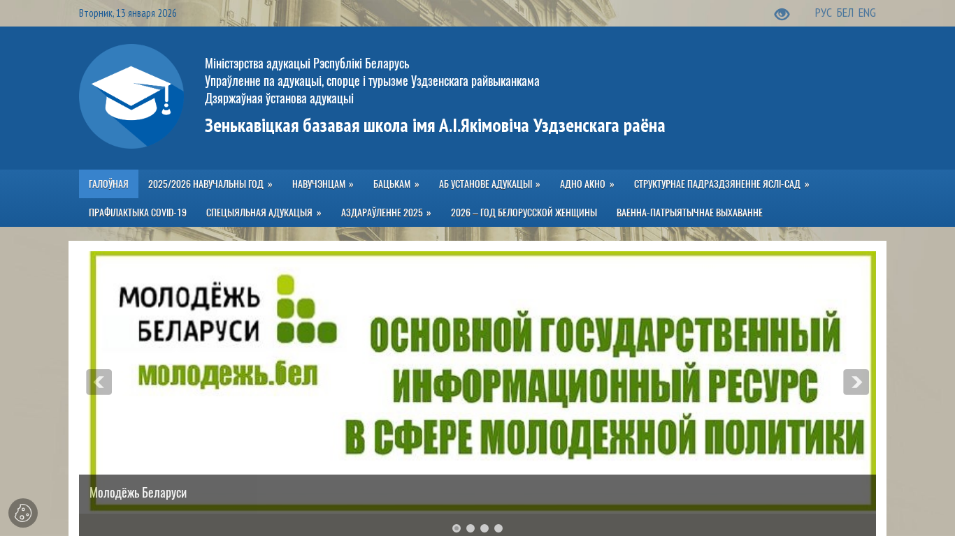| Название / Заголовок | Зенькавіцкая базавая школа імя А.І.Якімовіча Уздзенскага раёна |