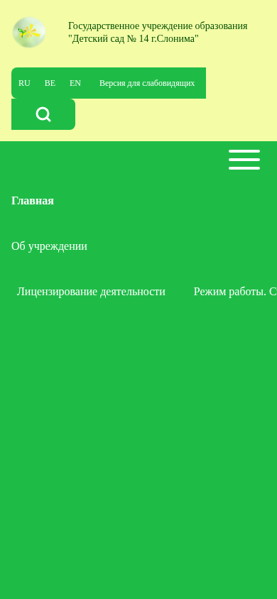 | Название / Заголовок | Главная | Государственное учреждение образования "Детский сад № 14 г.Слонима" |