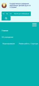 | AI-анализ | The web project "Государственное учреждение образования 'Детский сад № 18 г.Слонима'" is a website for a government educational institution called 'Детский сад № 18 г.Слонима' located in Slonim, Belarus. The website provides information about the kindergarten, its structure, goals, and functions. Keywords associated with the site include 'объединения по интересам', 'зодровый образ жизни', 'организация питания', and 'маршруты выходного дня'. The site also offers services such as 'Карта сайта', 'Гостевая книга', and 'Отзывы и комментарии'. The main navigation includes sections on 'Об учреждении', 'Направления деятель |