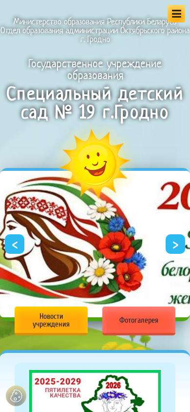 | Адрес | учащихся и студентов, ‹, ›, (c) ГУО "Специальный детский сад № 19 г. Гродно", 2026, Адрес: г. Гродно, ул. Гагарина, д.17 |