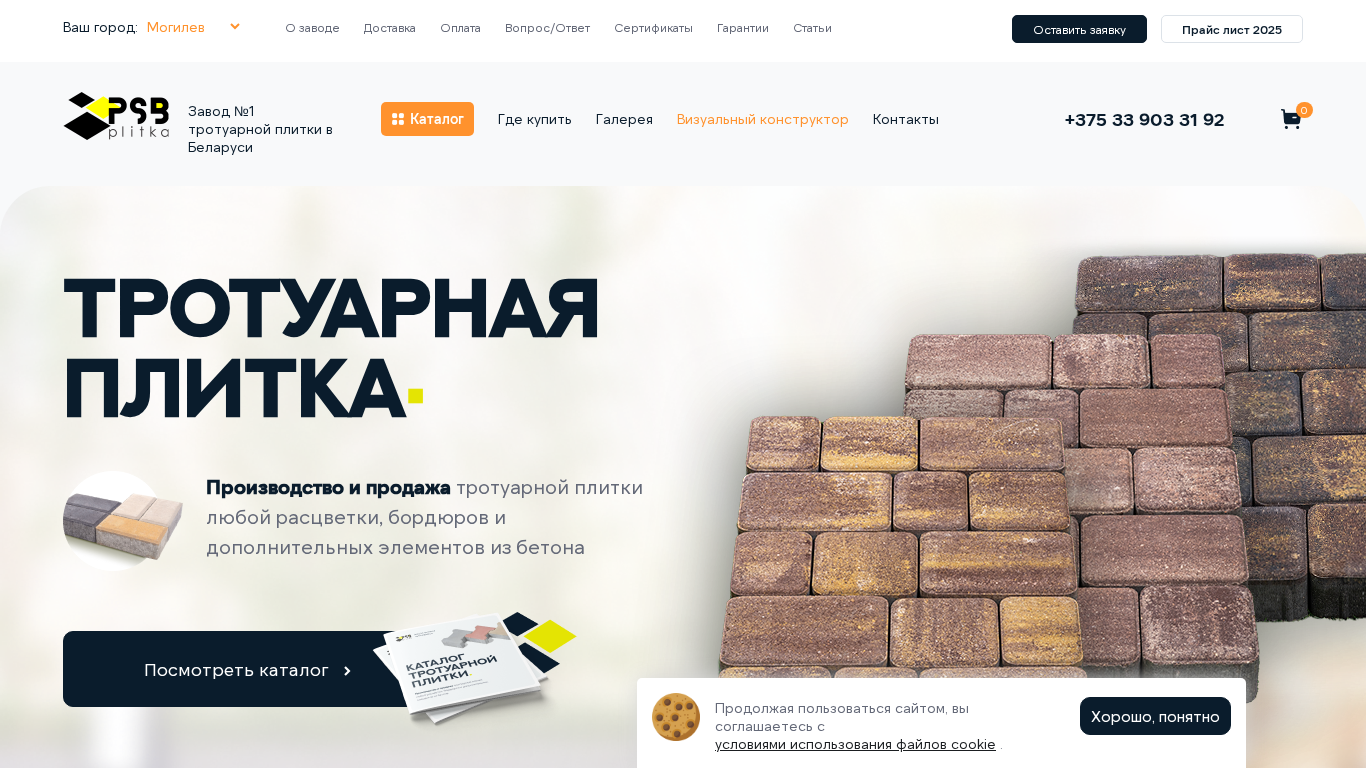 SEO-описание«ПСБ Плитка» – собственное производство качественной тротуарной плитки в Могилеве и Барановичах. Широкий ассортимент, доступные цены, доставка по Беларуси. Гарантия качества, сертифицированные материалы, фото готовых работ. Заказывайте напрямую от производителя!