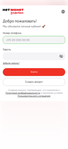 Проект веб-сервиса "НетМонет" (lk.netmonet.alfabank.by) представляет собой портал для входа в онлайн-банкинг или финансовые услуги. Посетителям необходимо включить JavaScript, чтобы использовать приложение. Новым пользователям предлагается создать аккаунт и принять условия использования и политику конфиденциальности. Забытые пароли можно сбросить, а существующие пользователи могут войти с помощью номера телефона и пароля. Портал был недавно обновлен.