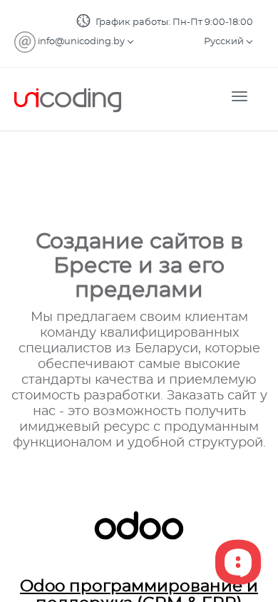 | SEO-описание | Юникодинг: создание сайтов, интернет-магазинов, lending page, каталогов в Бресте и за его пределами. Заказать сайт на cms, php, python, JavaScript. Разработка ПО, ERP системы Odoo |