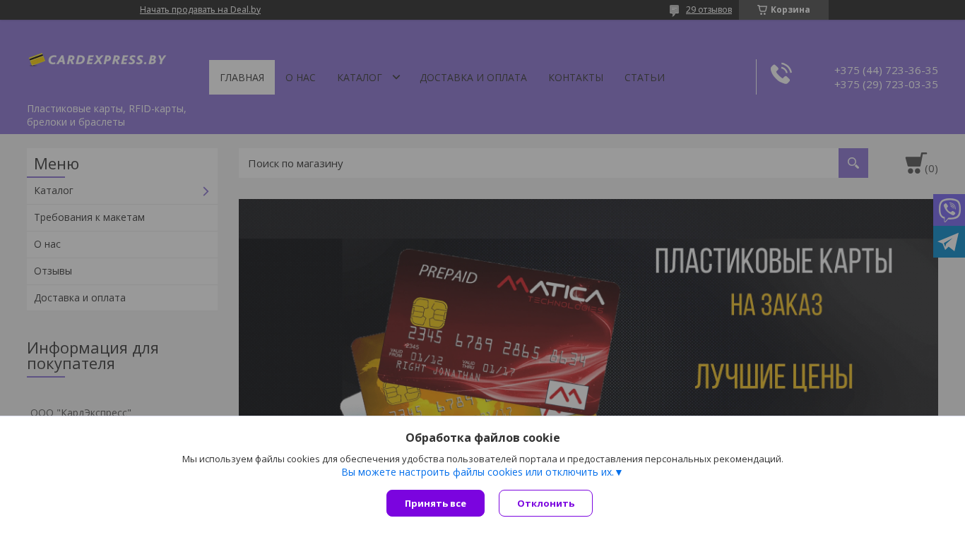 | SEO-описание | Пластиковые карты купить в Минске в компании cardexpress.by. Предлагаем выпустить пластиковую карту с штрих-кодом, в наличии ленты и шнурки для пластиковых карт. Производство в кратчайшие сроки с бесплатной доставкой по Минску и области. Звоните! |
