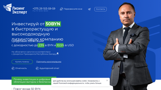 | Название / Заголовок | Лизинг Эксперт - Цифровые облигации (токены) с доходностью до 24.5% годовых в BYN |