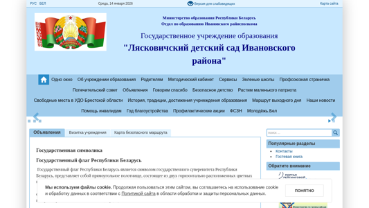 | AI-анализ | The portal 'Дду-Лясковичский детский сад Ивановского района' (Ddu-Lyaskovichsky detsky sad Ivanovskogo raiona) is a Belarusian educational website dedicated to a kindergarten in Ivanovo region, Belarus. The title includes the name of the kindergarten, its location in Ivanovo region, and the suffix 'сад' (sad) meaning kindergarten in Russian. The description provides no further information about the kindergarten or its services. The most frequent keywords include 'образования' (education), 'беларусь' (Belarus), 'республики' (republic), 'новости' (news), 'сайта' (website), '2026' (year), 'читать' (read), 'далее' (further), |