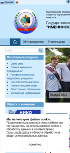 | AI-анализ | The website is for Imeninskaya Srednaya Shkola (Imenin Middle School), located in the village of Imenin, under the jurisdiction of the Cobrin district in Belarus. The school has 154 students and is overseen by Director Marina Yurenya. The site provides information on the school's administration, student life, academic programs, and contact details. Popular sections include "School of Active Citizenship" and "Professional Training for Students." The website also offers announcements, a school map, and safety instructions. The design features standard to large font sizes and standard spacing. Images are disabled with a black-and-white color scheme. Cookies are used, and users must agree to the site's privacy policy. The site is accessible in both Russian and a standard version. Additional features include RSS feeds, a contact form |