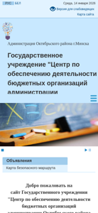 | AI-анализ | This online resource is the official website of the "Center for the Support of Budgetary Organizations' Activities Administration of the October District of the City of Minsk" in Belarus. The website provides information about the center's activities, including upcoming events and news. Keywords associated with the site include 'budget', 'organizations', 'administration', 'Minsk', and 'October District'. The site also offers services such as electronic applications and normative-legal documents. The design features a standard color scheme and font size with a medium inter-letter spacing. Images are turned off with a black and white color palette. The site includes sections for contacts, structure, photo-video gallery, and archived news. The homepage announces an upcoming anti-corruption commission meeting on December 23, 2025, and provides a map for safe navigation. The domain name |