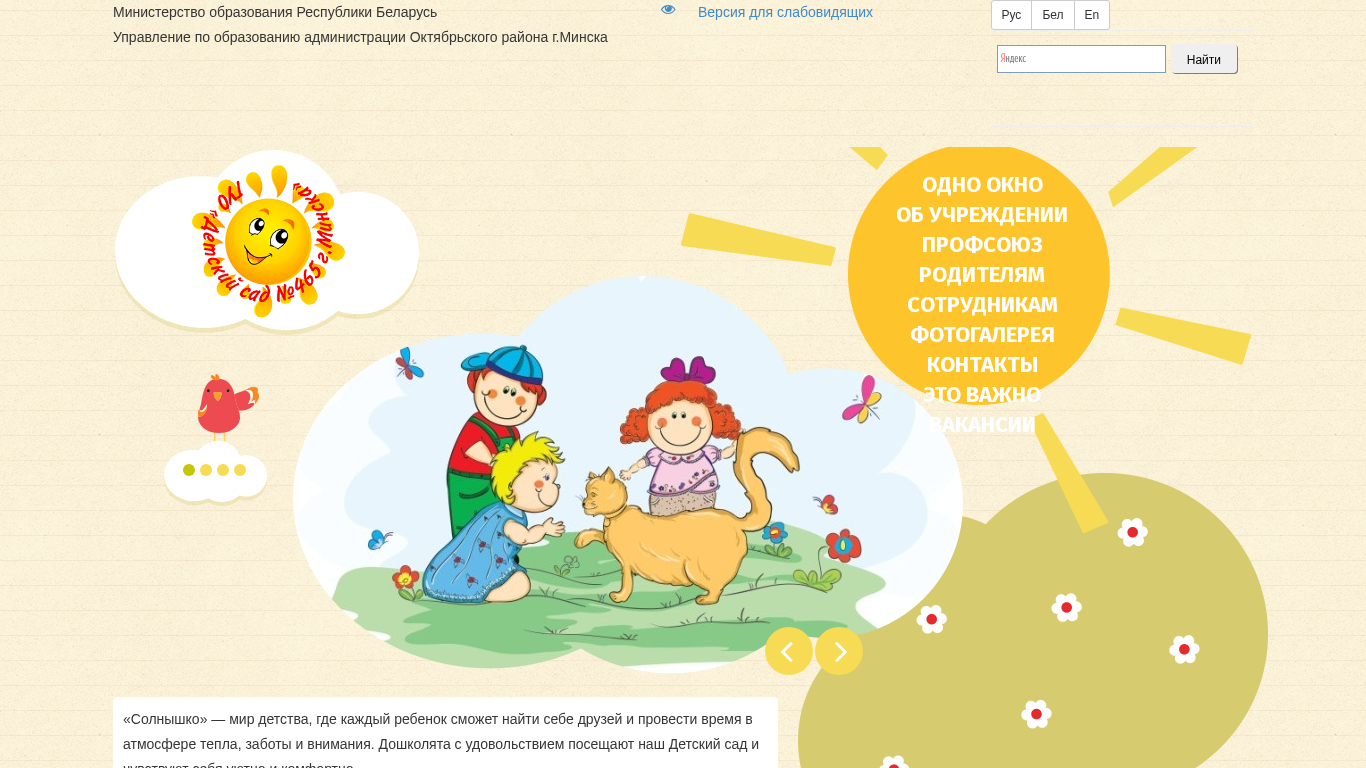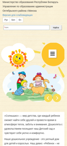 | AI-анализ | The web project "Детский сад № 465" g. Минск | Дети — это цветы (Children's Garden No. 465 in Minsk | Children are flowers) is a website related to education in Belarus. The domain belongs to the Ministry of Education of the Republic of Belarus and is managed by the Educational Administration of the Oktyabrsky District in Minsk. The site provides information for visually impaired users in Belarusian, as well as in various other languages including, but not limited to, Azerbaijani, Bengali, Cantonese, Guarani, Hungarian, Iban, Indonesian, Kashmiri, Kirghiz, Kurdish, Lao, Latvian, Lithuanian, Maltese, Mari, Tatar, Turkish, Ukrainian, |