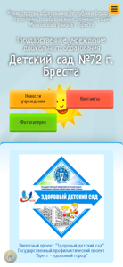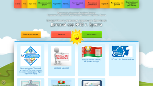 | AI-анализ | The website is for a kindergarten named №72 in the city of Brest, Belarus. It provides information on the kindergarten's name, location, management, schedule, news, educational objectives and functions, admission procedures, leadership, staff, social-psychological services, documents, photo gallery, and vacancies. The website also features a contact page with phone numbers and electronic contact form, and information on the educational process, methodological platform, additional education, and safety measures. The site's structure includes sections on the kindergarten's history, traditions, achievements, and a calendar of events. The website is operated by the Brest city education administration and is under the auspices of the Ministry of Education of the Republic of Belarus. |