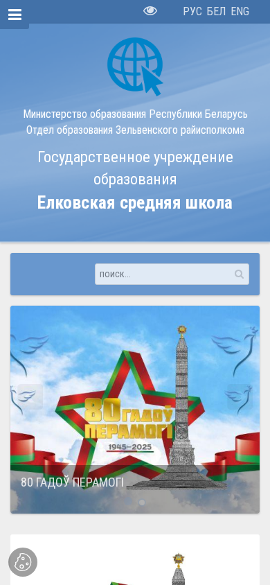 | AI-анализ | This online resource is the official website of Elkovskaya Sredniaia Shkola (Elkovskaya Middle School) in Zhelvan, Grodno Oblast, Belarus. The title of the website is "Елковская средняя школа" and it contains information about the school, its events, and various educational initiatives. The description includes keywords such as "школа" (school), "образования" (education), "год" (year), "женщины" (women), and "дети" (children). The top words on the website are "2026," "школа," "образования," "января" (January), "порядок," "работы," "год," "моя," "наши," "обращения," "граждан," "елковская," |