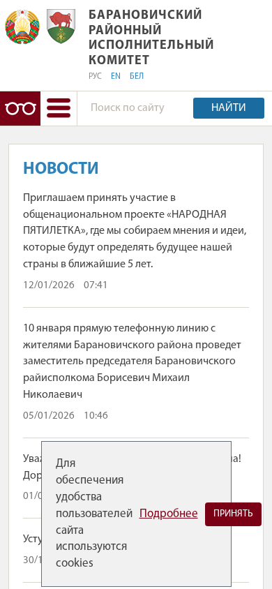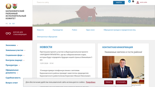 | AI-анализ | The portal baranovichi.brest-region.gov.by is a government website for the Baranovichi region in Belarus. The Russian version of the site includes a menu with sections for news, administration, and information on the local government structure. Notable figures include the chairman of the regional executive committee, the managing director of the executive committee, and several deputies. The site provides information on the history of the region, notable residents, and services such as 'Одно окно' for administrative procedures. Additionally, there is a section for contacts and procedures for appealing administrative decisions. The site includes information on nearby banks and post offices, as well as details on the process for paying for administrative procedures. The site also features an interactive map of 'ОДНО ОКНО' service locations and a section for handling citizen and business inquiries. The site is organized under the Baranovichi Regional Executive |