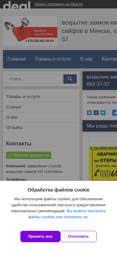 | Название / Заголовок | "аварийная служба вскрытие замков УП «ПАНиКа»" - контакты, товары, услуги, цены |