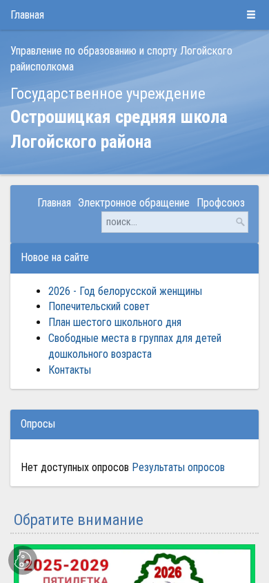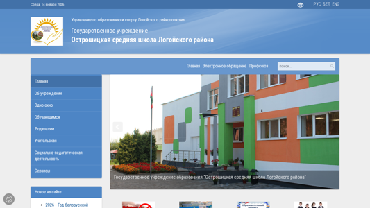 | AI-анализ | The website is the official site of Ostroshitskaia Sredniaia Shkola (Ostroshitskaia Middle School) in Lогойского района (Logoysk District), Belarus. It provides information on the school's management, educational programs, events, and initiatives. The website is organized around various topics, such as the school year schedule, educational plans, and extracurricular activities. The school's mission and goals, as well as its history and achievements, are also featured. The site includes sections for parents, teachers, and students, with information on enrollment, academic resources, and school policies. The website also provides access to electronic learning tools and multimedia resources, as well as information on the school's community involvement and civic engagement initiatives. The site is maintained by the Education and Sports Department of the Logoysk District Executive Committee and features interactive maps, news |