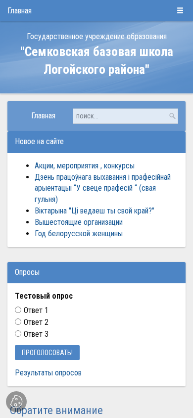 | Название / Заголовок | Контакты - Государственное учреждение образования "Семковская базовая школа Логойского района" |