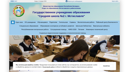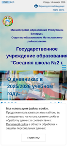 | AI-анализ | The portal "СШ №2 г.Мстиславля" (Middle School No. 2 in Mstislavl) is an educational website that provides information about the school, its schedule, and various services for students, parents, and administrative personnel. The site includes sections on the school's history, academic programs, extracurricular activities, and administrative procedures. Keywords associated with the portal include "education," "institution," "read," "further," "2026," "school," "site," "representatives," "work," "working," "graphic," "classes," "parents," "secondary," "events," "2025," "dishes," "advice," and "ministry." The website uses cookies and is managed by the Ministry of Education of the Republic of Belarus, the Mstislavl Regional Executive Committee, and |
