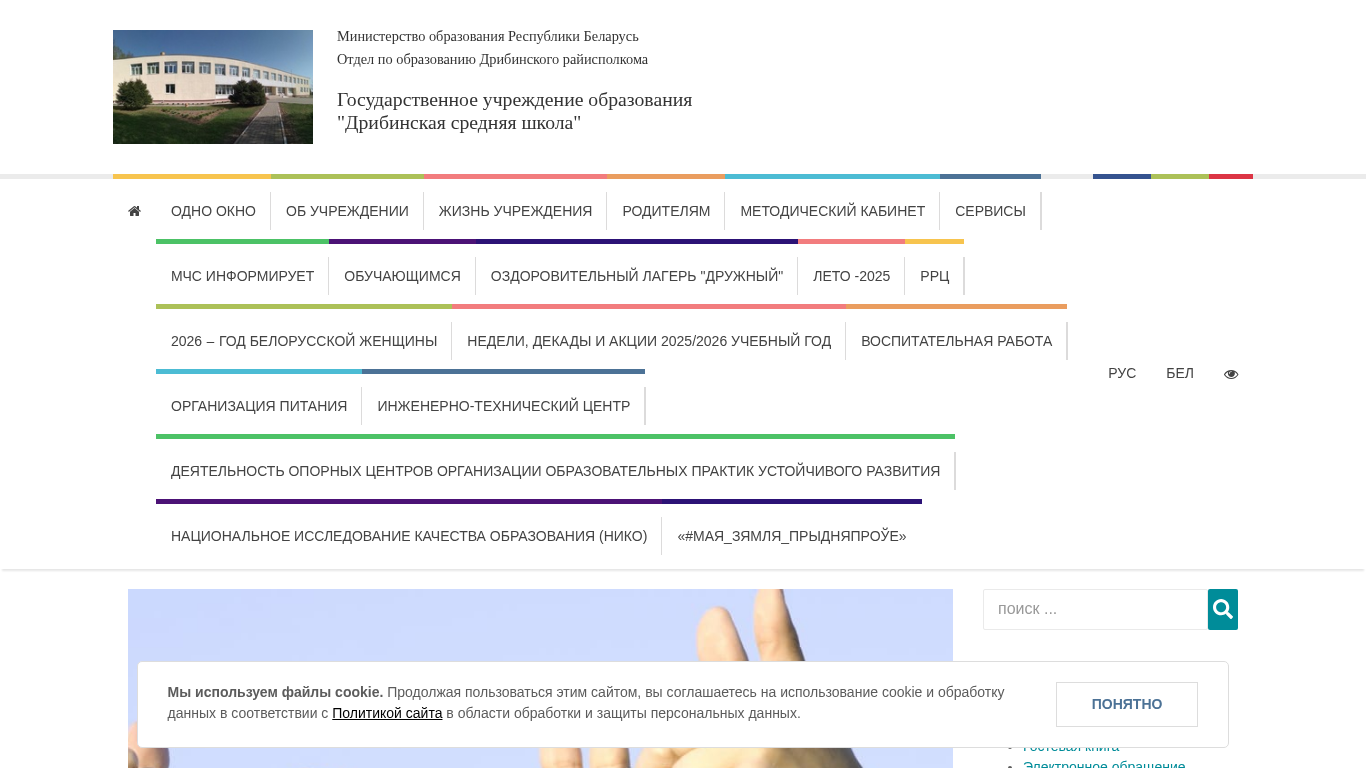 | Адрес | Формируем будущее вместе с молодежью!, подробнее », ‹, ›, © school.dribin.edu.by, 2026, 213971 г.п. Дрибин, ул. Советская, 13 |