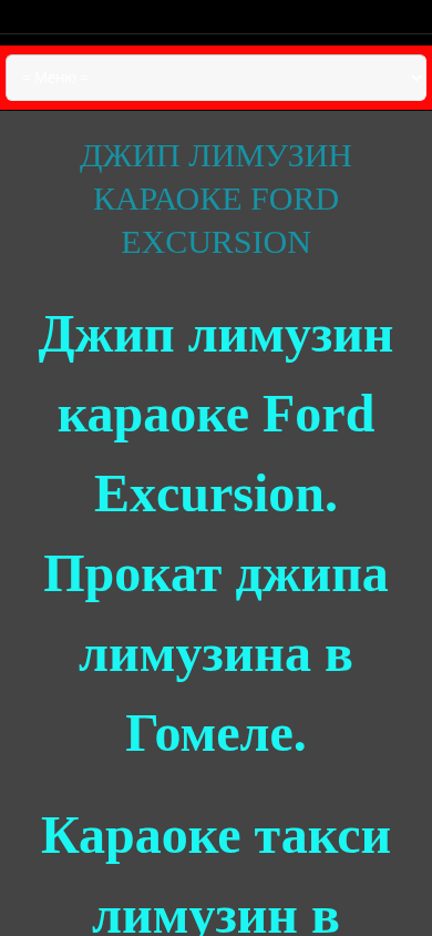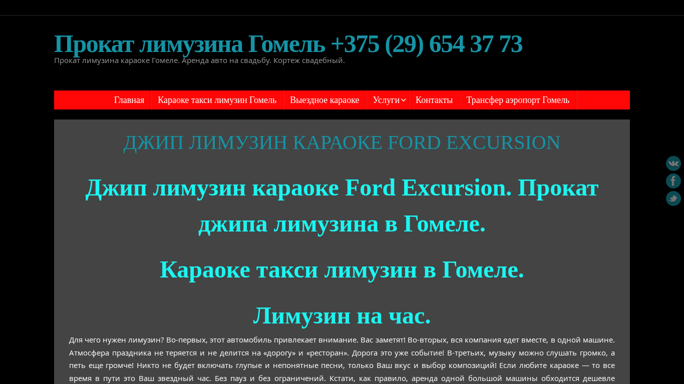 | SEO-описание | Джип лимузин Ford Excursion,аренда лимузинов на свадьбу,лучшие лимузины в Гомеле,заказать лимузин,аренда лимузина на свадьбу,лимузин на свадьбу недорого |