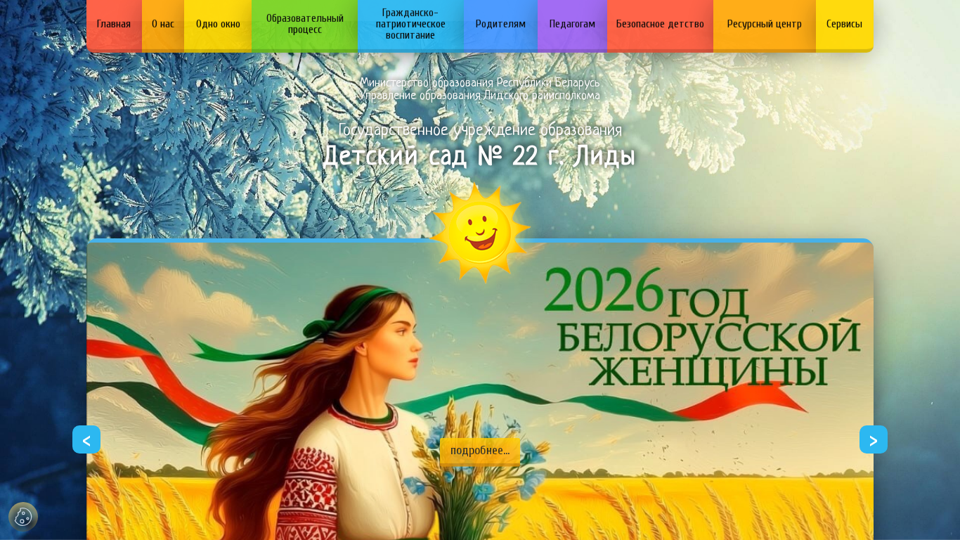 | Адрес | рейтинговой оценки, (c) ГУО "Детский сад № 22 г. Лиды", 2026, Адрес: 231300, Гродненская область, г. Лида, ул. Тавлая 37 |