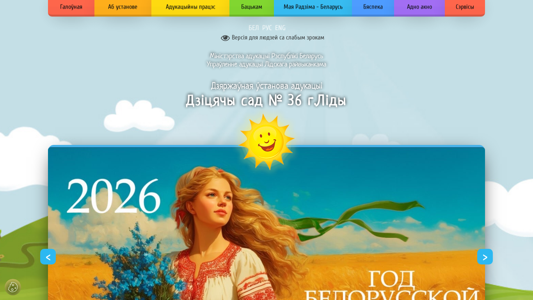 | AI-анализ | This website is the official homepage for Kindergarten No. 36 in the city of Lida, Belarus. It provides information about the kindergarten's regime, objectives, and functions of the educational and care services for preschool children. The website includes sections for parents, such as contact information, educational materials, and forms required for administrative procedures. It also offers a calendar of events, information on safety measures, and advice on various topics related to childcare. The website is operated by the Lida City Administration's Education Department. |
