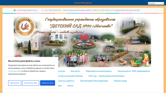 | AI-анализ | This online resource is a state educational institution called "Detsky Sad #70 g. Mogileva" with the tagline "Our work - love and care!" The website uses cookie files for functionality and data processing in accordance with its Privacy Policy. The policy is developed in accordance with the Law of the Republic of Belarus No. 99-3 "On the Protection of Personal Data" to protect the personal data of website users, who are the subjects of personal data. The policy explains the reasons and methods for processing cookie files by the State Education Institution and how users can control the process. Cookie files are text documents saved in the user's browser upon visiting the website, allowing for the preservation of user preferences, such as language selection. |