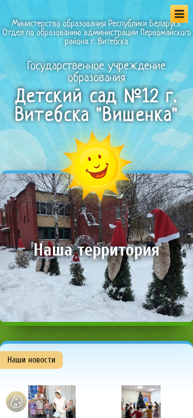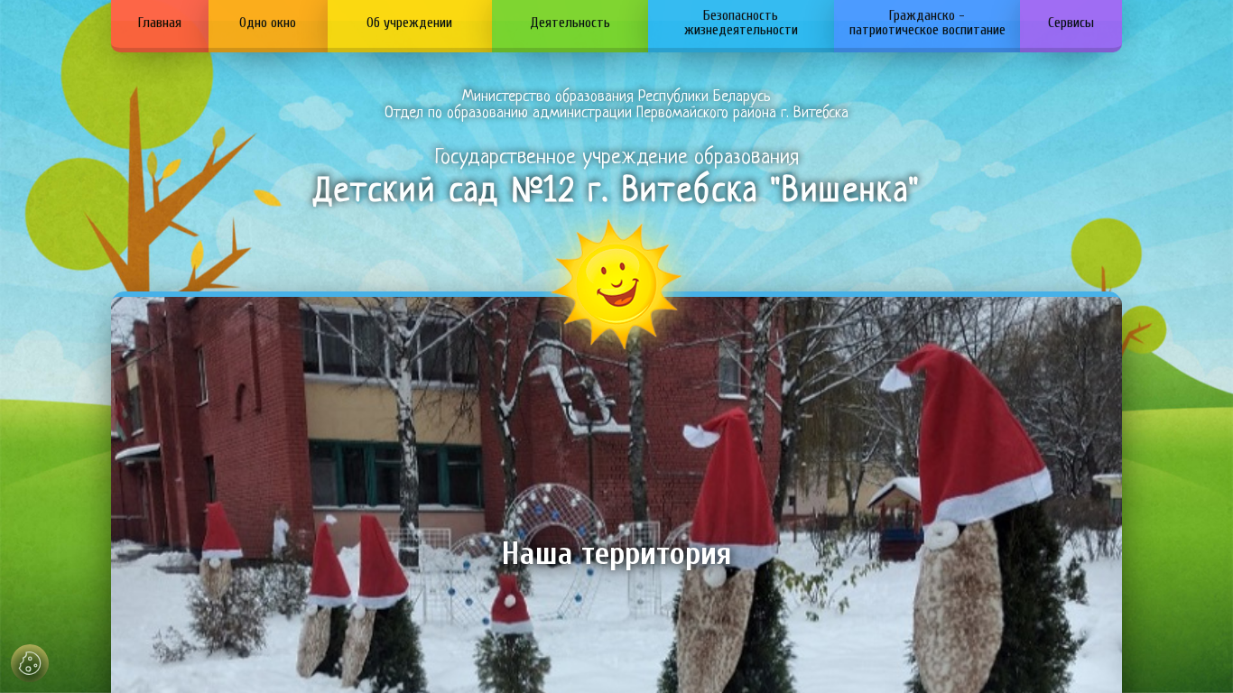 | AI-анализ | --- This website is for the Kindergarten No. 12 in the city of Vitebsk, Belarus, named "Vishinka". The title and description include keywords related to education, the city of Vitebsk, Kindergarten No. 12, and the name "Vishinka". The top words indicate topics such as the city's educational network, administrative procedures, and contact information. The website contains information about the kindergarten's leadership, schedule, admission process, and various policies and regulations. Interactive maps of educational institutions in the First May district of Vitebsk are also available. The kindergarten's history, traditions, and achievements are also featured. The website complies with various legal documents regarding administrative procedures and the provision of social guarantees to individuals with disabilities. The kindergarten offers educational services for the 2025/2 |