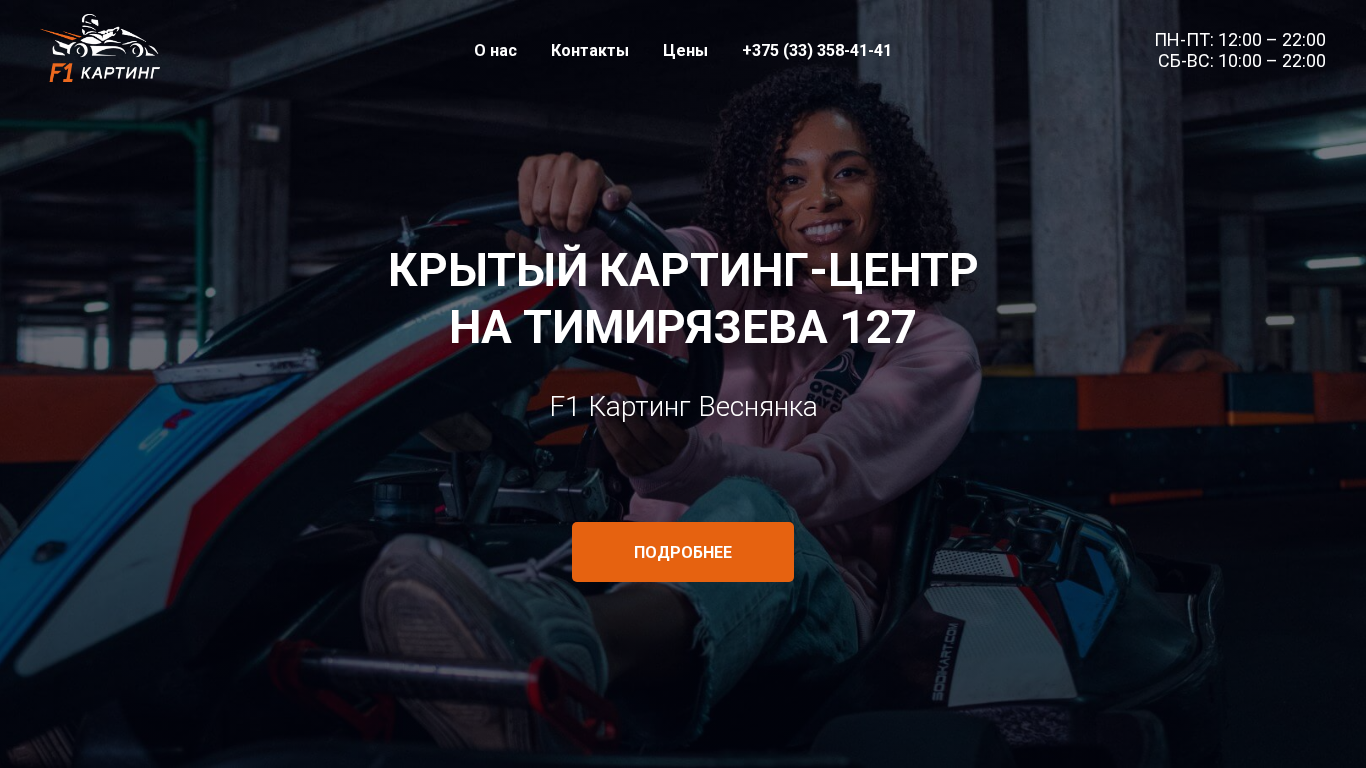 | SEO-описание | Картинг в Минске на крытом паркинге ТЦ "Радиомаркет" ул. Тимирязева 127. Цены на аренду F1-Картинг в выходные и будние дни. Комфортная зона отдыха для посетителей. ☎️ +375 (33) 358-41-41 |
