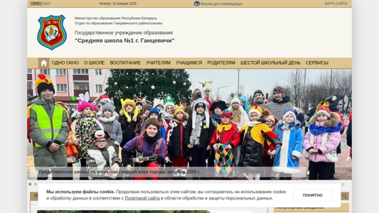 | AI-анализ | The portal of Middle School #1 in the city of Gancavichi (sch1.gancevichi.edu.by) is a website managed by the educational institution of the same name under the Ministry of Education of the Republic of Belarus and the Gancavich District Executive Committee. The site provides information about the school's administration, policies, class schedules, news, contacts, and various initiatives for students and parents. Key topics include the school's history, class offerings, rules for students, paid services, and various support systems. The site also features resources for parents, such as a "Parent University," information on school meals, and a section for emergency preparedness. The site is structured into various sections, including an administrative procedures section, a section for school policies, and a section for news and events. The site includes a library, information on the school's uniform policy, and a section for |