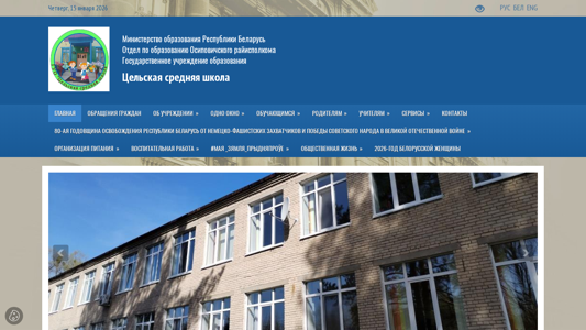 | AI-анализ | The website is the official page of Cel'skaya Srednyaya Shkola (Cel'skaya Middle School) in Osipopovichy, Belarus. The site provides information about the school's history, traditions, achievements, and current activities. It includes sections on the school's leadership, academic programs, sports facilities, and contact information. The website also features news and announcements, a calendar of events, and a library catalog. The school's mission, goals, and admission policies are outlined, along with information on extracurricular activities, parent-teacher associations, and disability services. The website is operated by the Ministry of Education of the Republic of Belarus and is accessible in Russian, Belarusian, and English. |