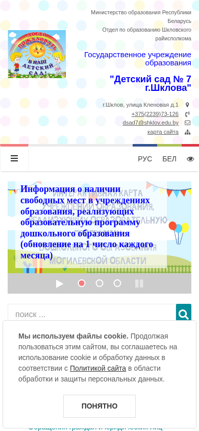| Название / Заголовок | Детский сад 7 г.Шклова |