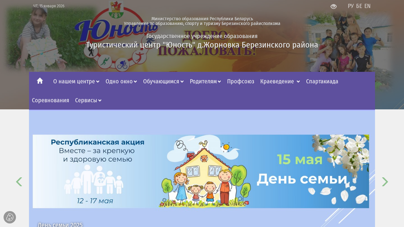 | Название / Заголовок | Туристический центр "Юность" д.Жорновка Березинского района |