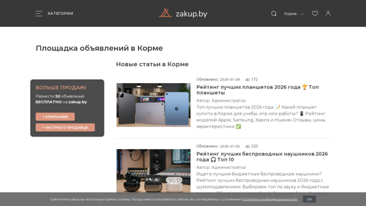 | SEO-описание | Купить, продать товары и услуги в Корме. Доска объявлений с фото и ценами. Online каталог сайтов, фирм, интернет-магазинов. Больше продаж! Размести 50 объявлений бесплатно на korma.zakup.by. |